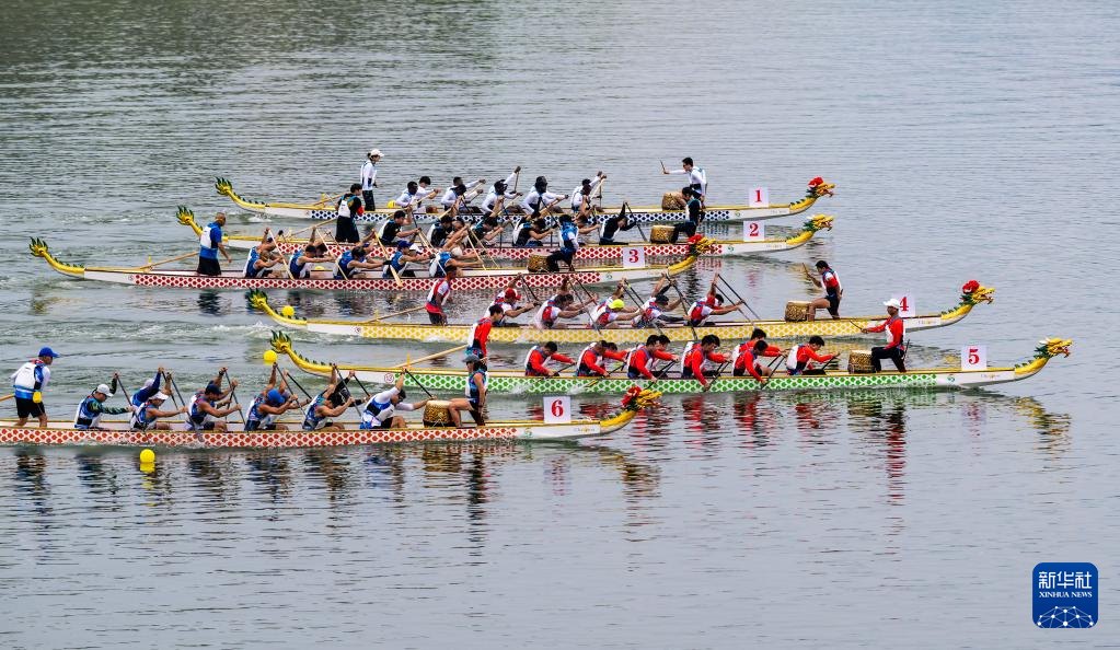 6月21日,来自海内外的龙舟代表队在秭归县徐家冲港湾参加2023年国际划联龙舟世界杯预赛。