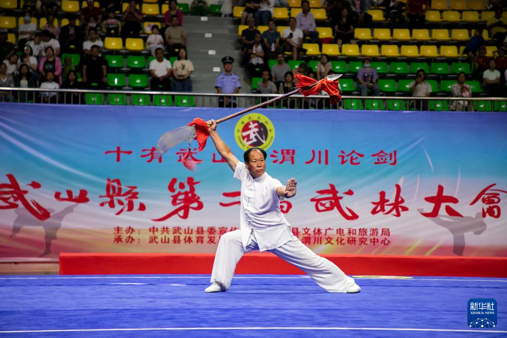 6月24日,在甘肃省天水市武山县,百余名武术健儿在当地举行的“武林大会”上一展身手,用精彩纷呈的武术表演丰富大众节日文化生活,展示传统武术文化魅力。