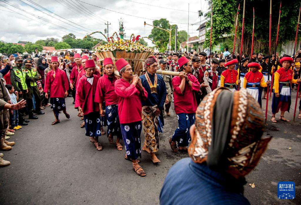 “抢山”是印度尼西亚部分地区为庆祝宰牲节举行的特色活动。人们扛着用水果、蔬菜等食物堆成的“小山”游行,并在游行结束后“争抢”食物,以此祈求节日祝福。