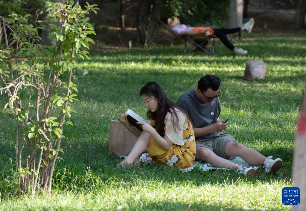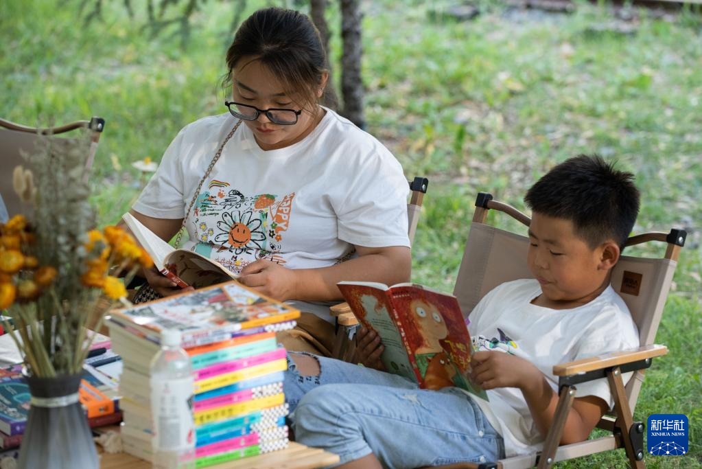 7月8日,由宁夏图书馆、宁夏阅读推广联盟主办的“宁静的夏天·阅读的声音”2023年宁夏阅读推广联盟阅读市集在银川市森林公园举办,活动免费向广大市民开放,露营风打造的纯享阅读区域吸引了众多读者。