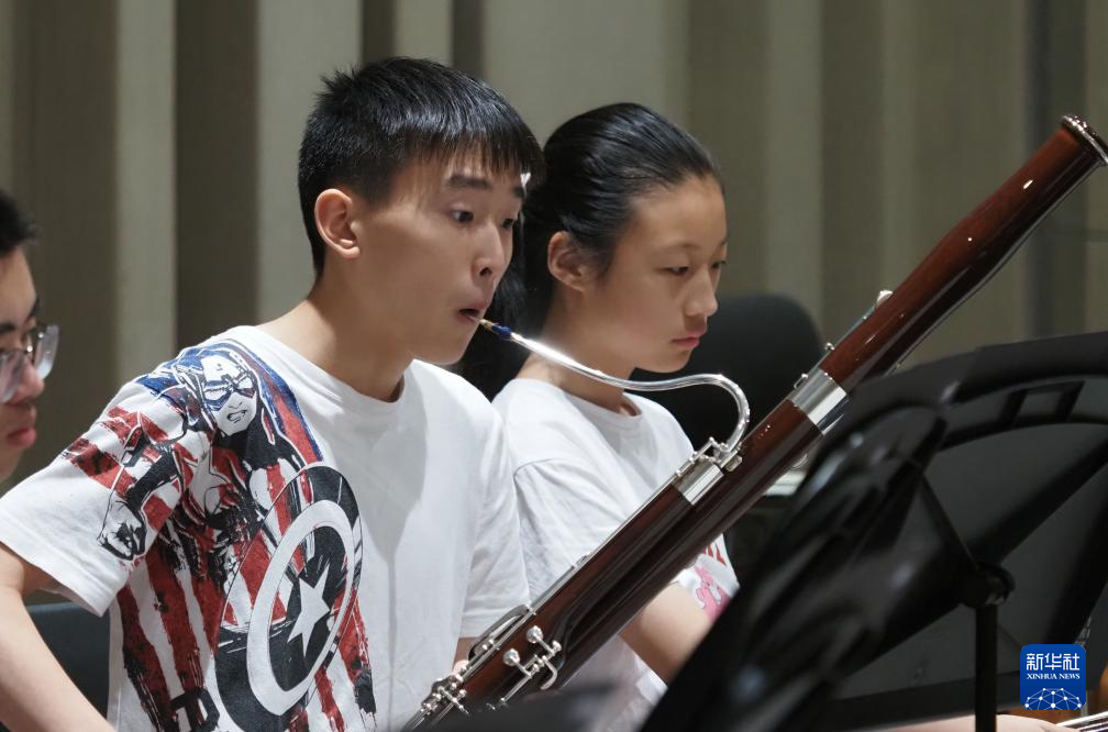 7月11日,“MISA学生节日乐团”管乐声部的学生在进行首次联排。