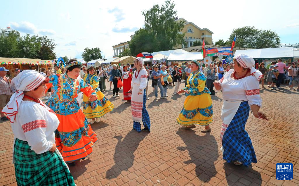 7月14日,演员在白俄罗斯维捷布斯克“斯拉夫巴扎”国际艺术节上表演民族舞蹈。