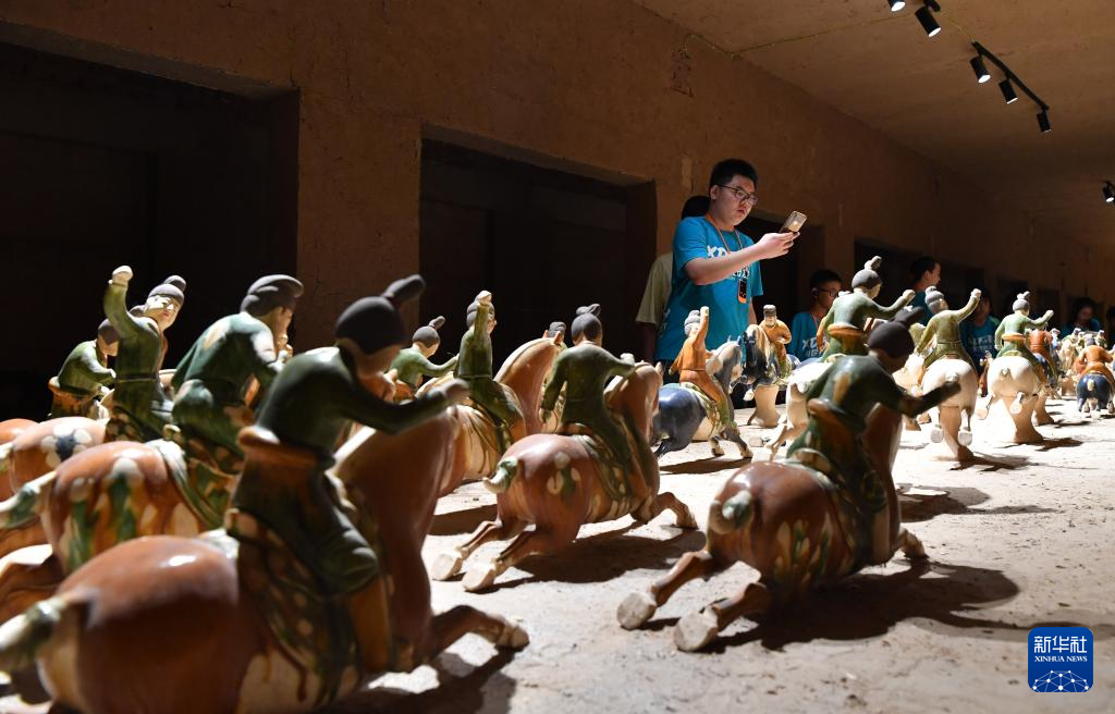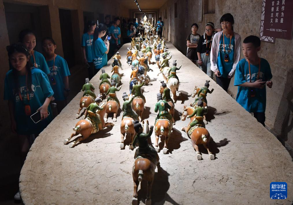 7月21日,参加研学活动的学生在南石山村的唐三彩文化园内参观。