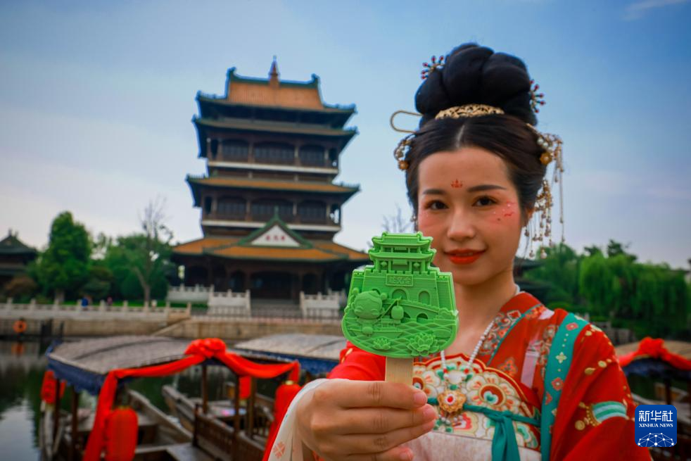 7月20日在山东省枣庄市台儿庄古城拍摄古建筑造型文创雪糕。