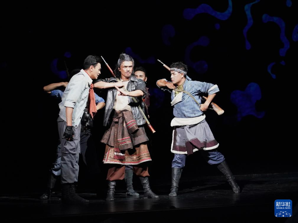 演员在舞剧《大河之源》中表演(7月26日摄)。