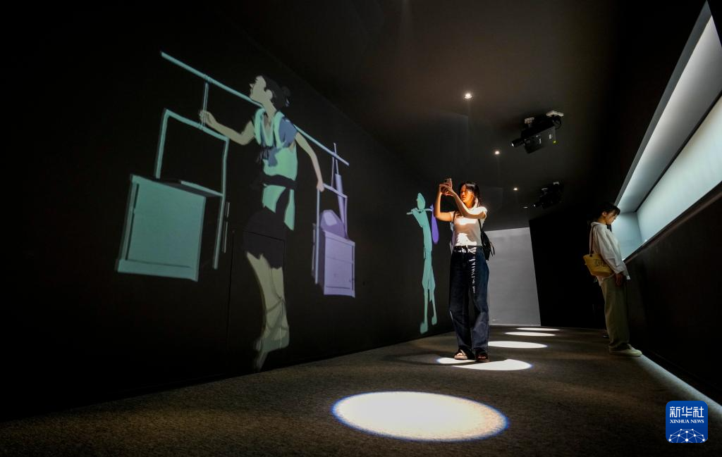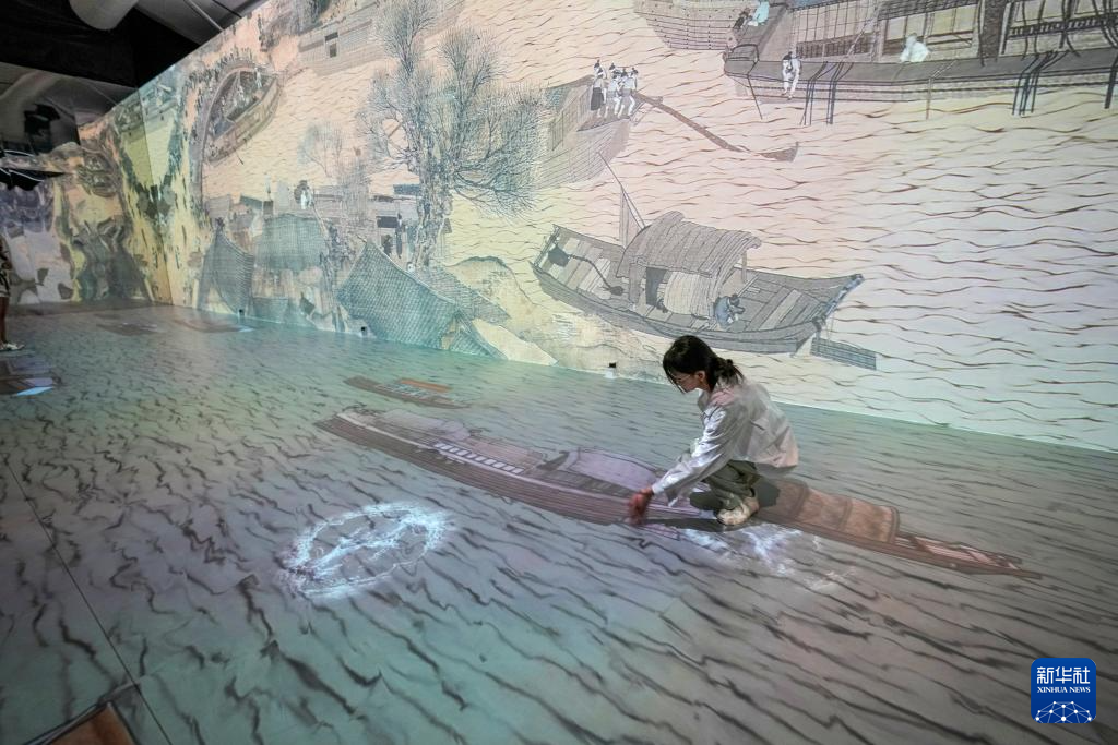 7月31日,演员在《画游清明上河――故宫沉浸艺术展》孙羊店全沉浸光影空间内展示宋朝时期的文化生活。