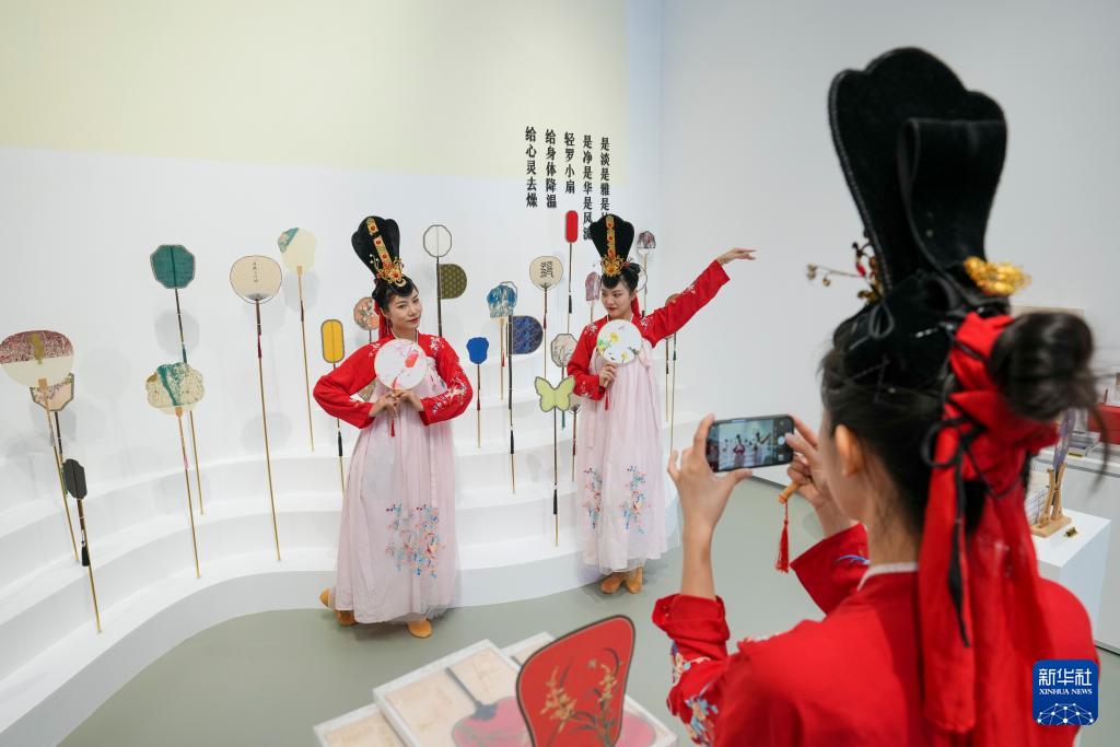 7月31日,《画游清明上河――故宫沉浸艺术展》展区的几名演员在拍照留念。