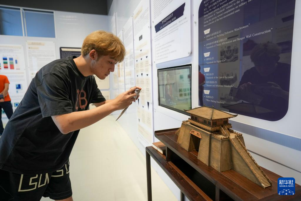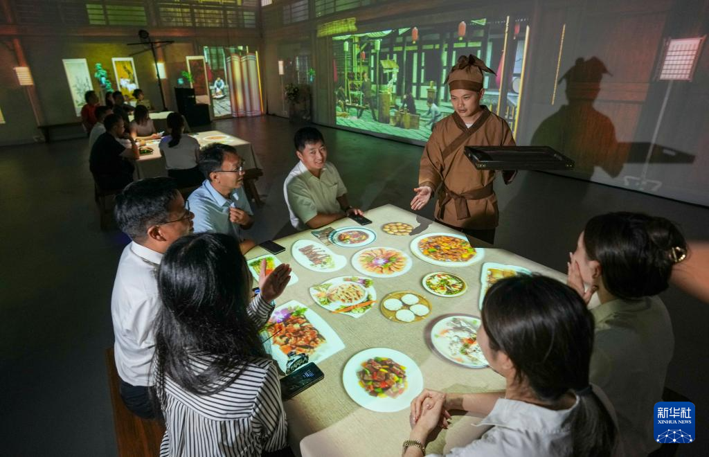 7月31日,游客在《画游清明上河――故宫沉浸艺术展》孙羊店全沉浸光影空间内体验宋朝时期餐馆的生活。