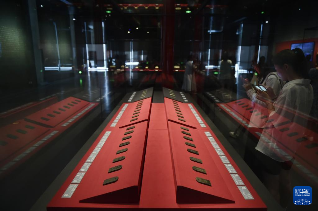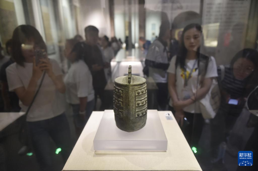 8月9日,观众在河南省开封市博物馆里参观“大晟夷则”铜编钟。