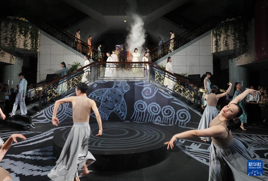 8月25日晚,演员在上博“研色·良渚之夜”综合艺术秀上表演现代舞。