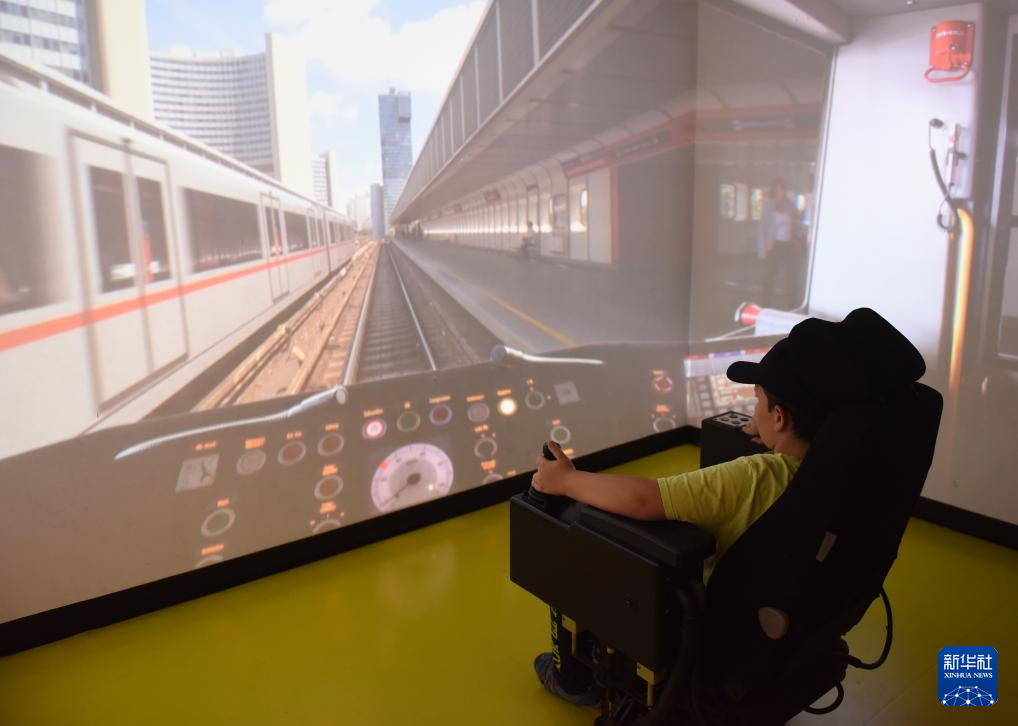 8月30日,在奥地利维也纳交通博物馆,观众模拟体验地铁列车驾驶。