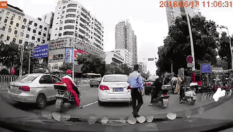 視頻顯示,6月13日中午11點(diǎn)06分,一名在湖南衡陽(yáng)街頭執(zhí)勤的交警正要對(duì)一輛車(chē)號(hào)為“湘DE**26”的白色轎車(chē)進(jìn)行執(zhí)法。就在該轎車(chē)停車(chē)的瞬間,這名交警毫無(wú)征兆地倒在地上,而那輛白色的轎車(chē)本能地向后退了一下。
