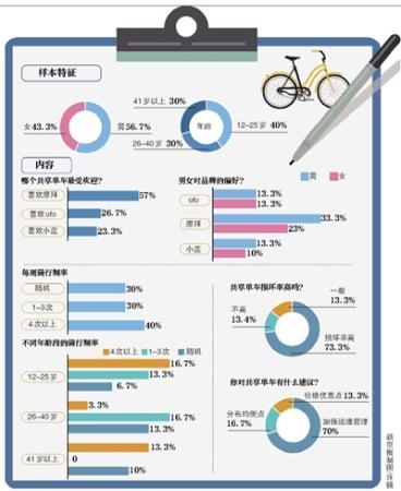 近日,新京報(bào)記者在北京前門、國瑞城、百子灣以及天通苑等商圈、地鐵站附近隨機(jī)采訪共享單車用戶,就共享單車騎行體驗(yàn)、運(yùn)維管理等情況進(jìn)行調(diào)查。此次共隨機(jī)采訪30位用戶,包括不同性別的青少年、青年、中年等年齡段用戶,涵蓋了學(xué)生、上班族、游客等多種人群。