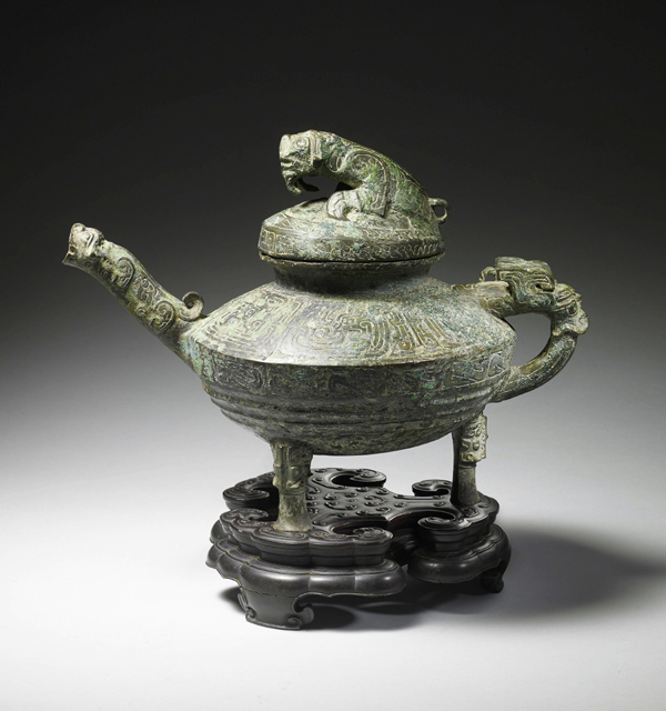 青銅“虎鎣”為西周晚期文物,頂蓋內(nèi)鑄有“自作供鎣”銘文,因其精美獨(dú)特的造型、罕見的虎形裝飾而具有重要的歷史、藝術(shù)和文化價(jià)值。根據(jù)相關(guān)資料顯示,青銅“虎鎣”原為清宮皇室舊藏,1860年被英國(guó)軍官哈利·埃文斯從圓明園劫掠獲得,此后一直由其家族收藏。