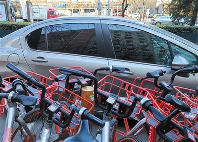 昨日,長椿街地鐵站附近,共享單車擋住計時裝置,導(dǎo)致無法正常計時收費。
