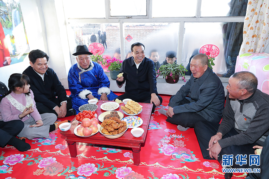 2月1日至2日,中共中央政治局常委、國務(wù)院總理李克強(qiáng)在內(nèi)蒙古自治區(qū)烏蘭察布市考察。這是2月1日,李克強(qiáng)在察哈爾右翼前旗三岔口鄉(xiāng)十二洲村慰問貧困戶。 新華社記者 姚大偉 攝