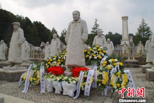 中國(guó)遠(yuǎn)征軍老兵達(dá)成遺愿夫婦骨灰安葬抗戰(zhàn)遺址。圖為徐中平雕塑。陳靜 攝