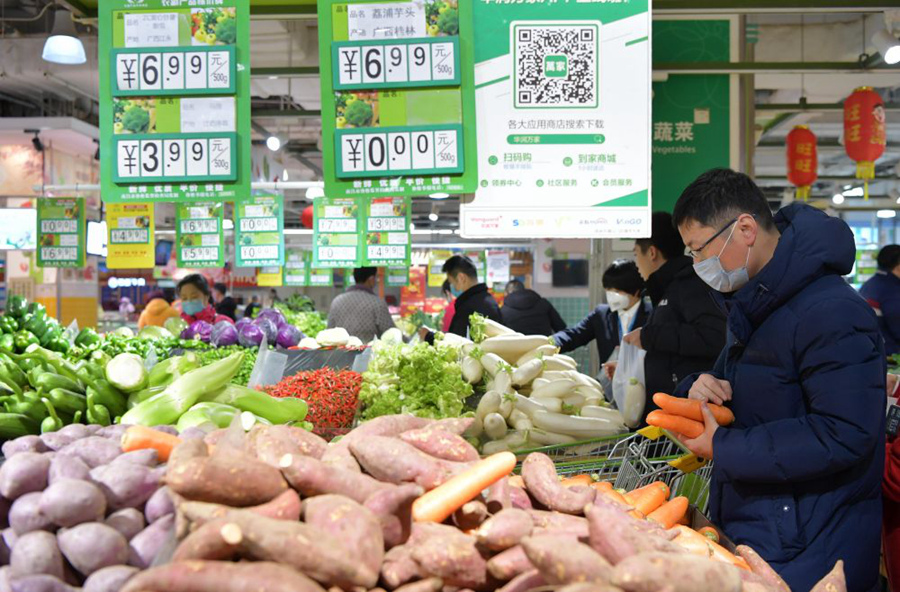 1月28日,在南昌市紅谷灘新區(qū)一家超市,市民在選購蔬菜。近日,江西各地加大價(jià)格監(jiān)測和執(zhí)法檢查力度,著力維護(hù)市場價(jià)格穩(wěn)定。目前,全省重點(diǎn)生活必需品貨源充足,市場供應(yīng)有保障,價(jià)格總體穩(wěn)定。新華社記者彭昭之?dāng)z