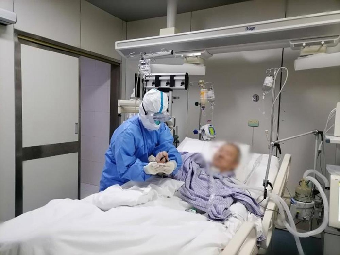 圖為北京地壇醫(yī)院ICU病房工作的劉繼月。