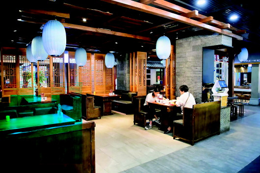 因?yàn)樘厣朗澈蛷?fù)制“老長(zhǎng)沙”街市風(fēng)情,“超級(jí)文和友”餐廳去年在網(wǎng)上爆紅。高峰時(shí)不僅店內(nèi)座無(wú)虛席、門外等位的食客人頭攢動(dòng),網(wǎng)上排隊(duì)取號(hào)還曾突破兩萬(wàn)桌。