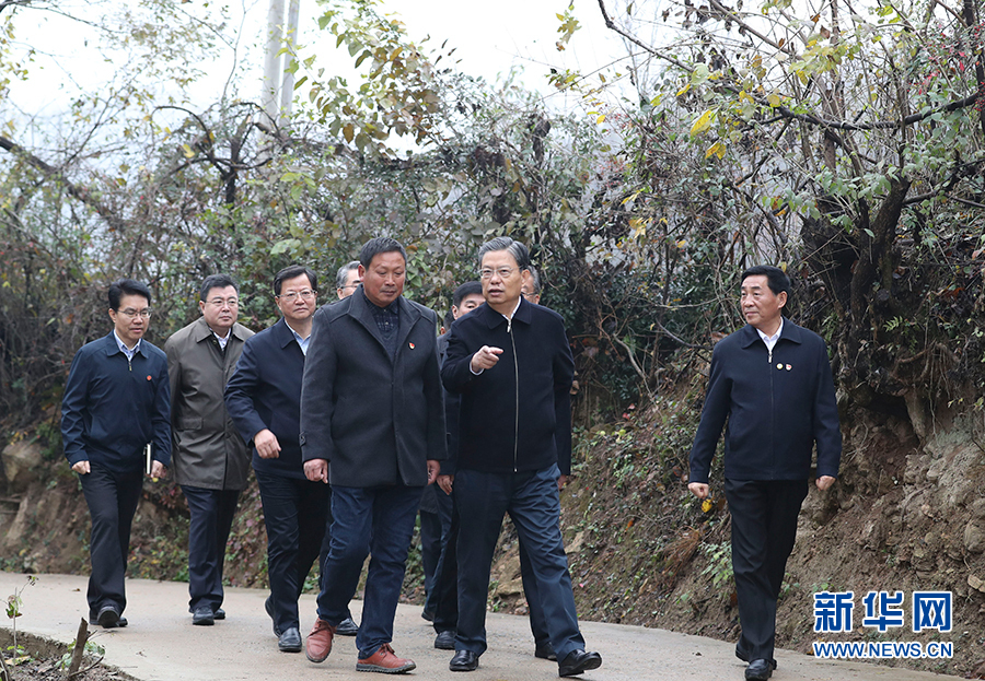 11月6日至9日,中共中央政治局常委、中央紀委書記趙樂際到河南省調(diào)研。這是11月7日,趙樂際在南陽市桐柏縣吳灣村實地走訪調(diào)研。 新華社記者丁林攝