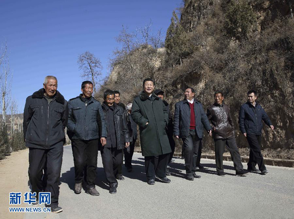 2015年2月中旬,習(xí)近平到陜西看望慰問群眾,特意找來當(dāng)年陜甘寧革命老區(qū)所屬范圍的市縣領(lǐng)導(dǎo)人,一起開了陜甘寧革命老區(qū)脫貧致富座談會(huì),了解情況,明確思路,推進(jìn)工作。