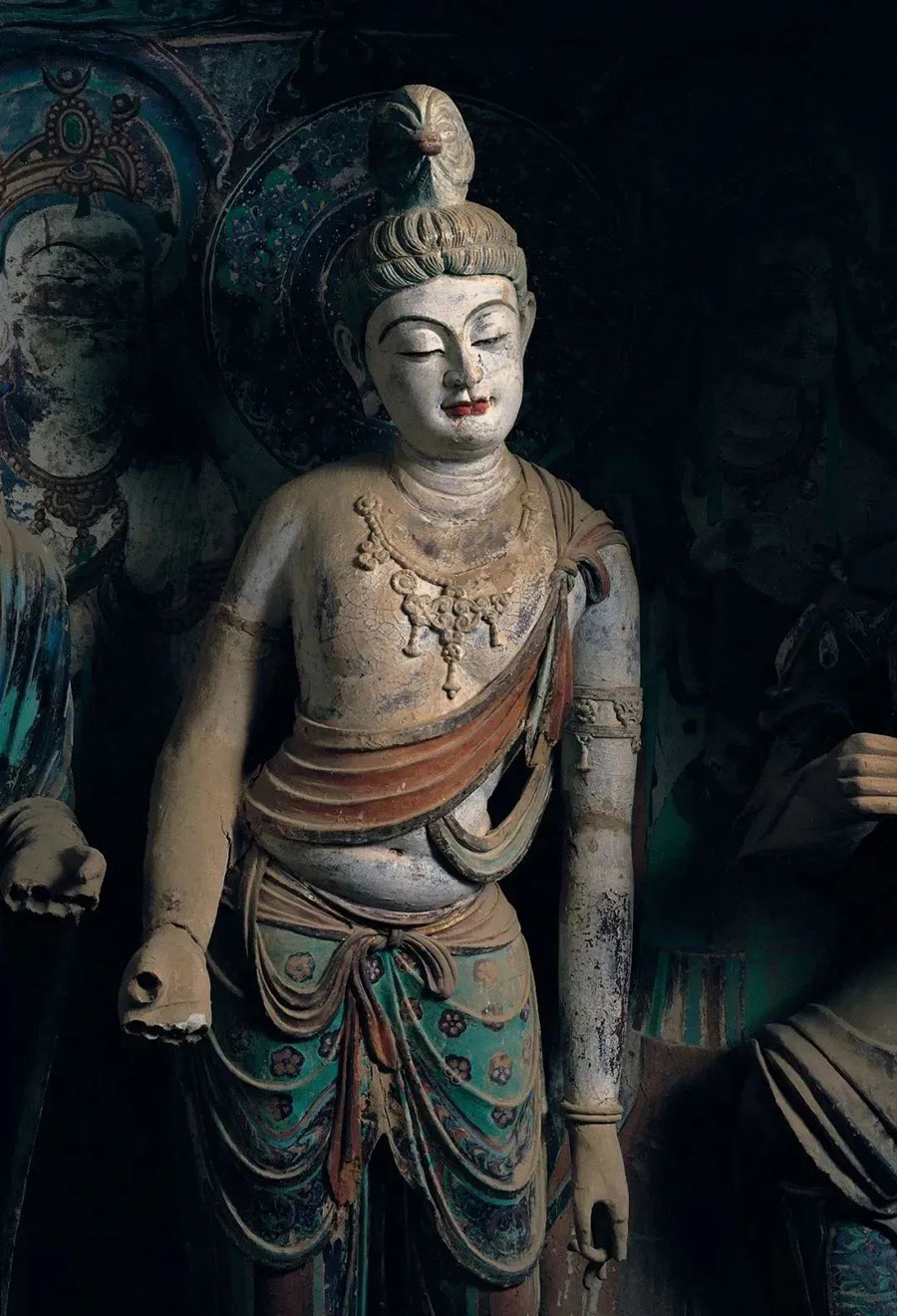据统计,敦煌莫高窟现保存着十个朝代的彩塑两千余尊,浮塑一千余身,其保存古代彩塑之多,历时之长,技艺之精,为世界所罕见。这些充满生命力的彩塑作品,是我们穿越时空抵达古人思想与心灵的珍贵载体。