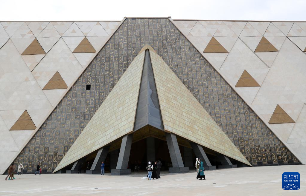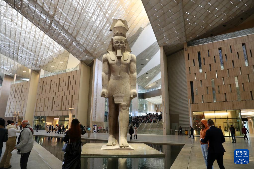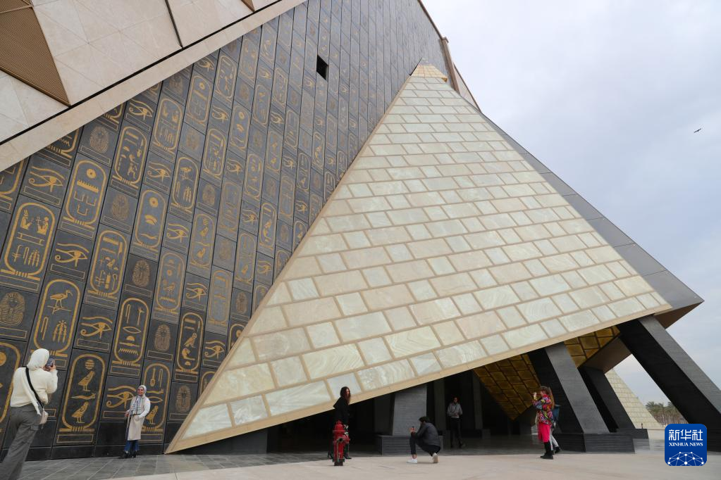 2月11日,游客在位于埃及吉萨省的大埃及博物馆入口处参观。