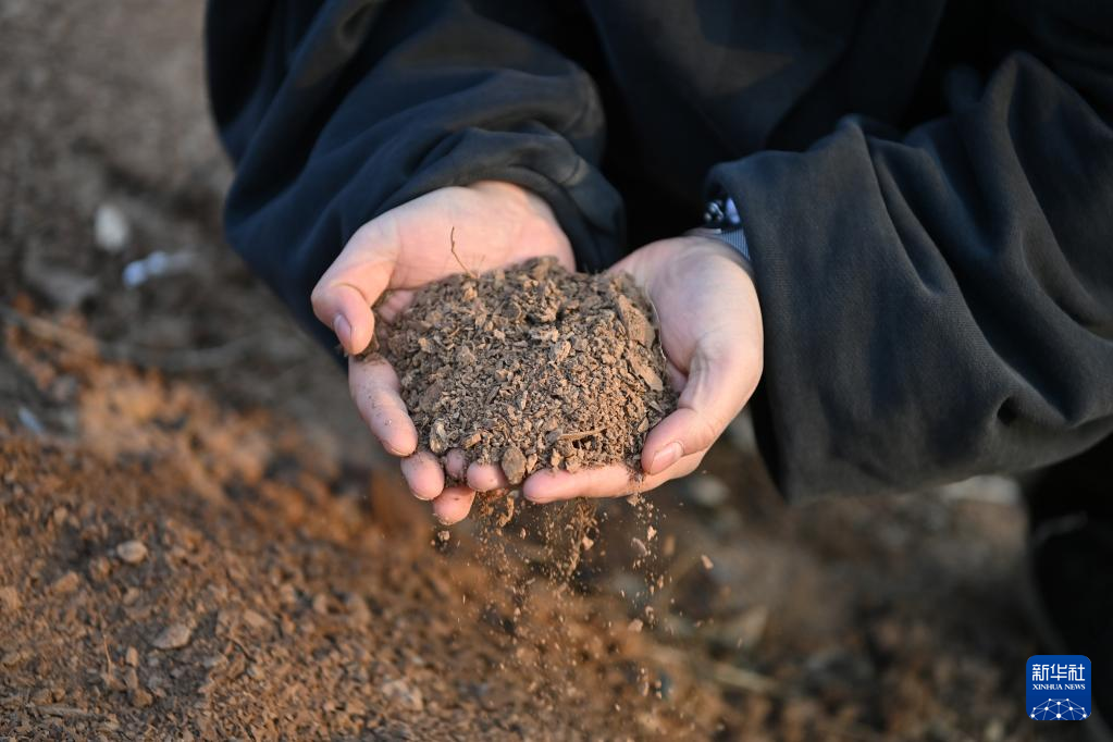 2月14日,在位于新绛县光村的绛州澄泥砚生产基地,蔺霄鳞在选泥。
