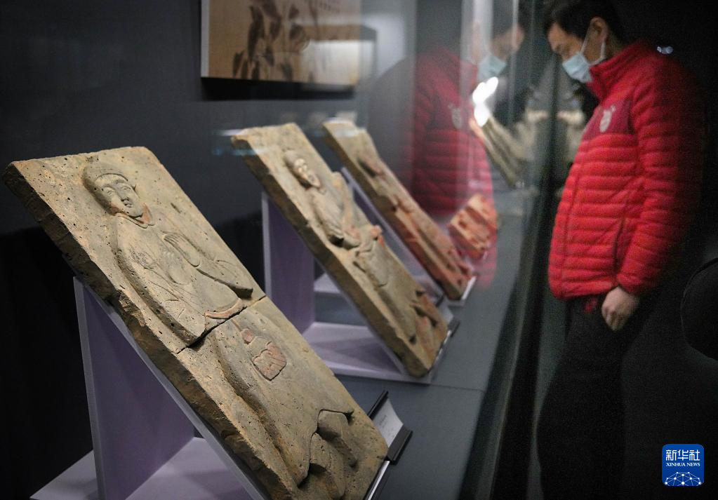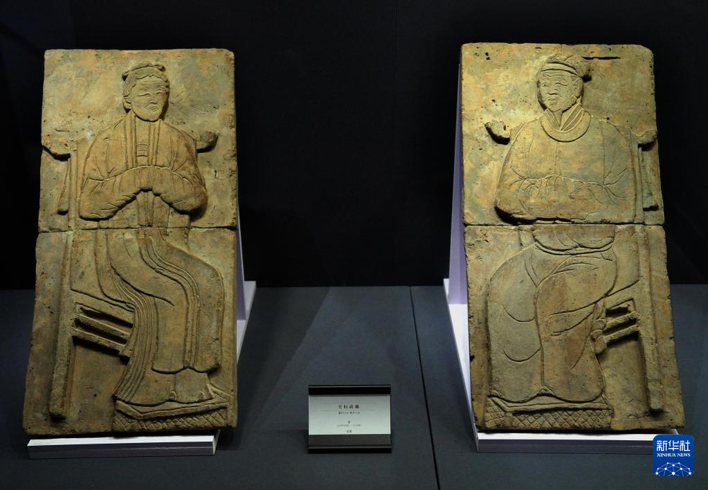 这是在郑州大象陶瓷博物馆举行的“宋人生活与二十四孝砖雕展”上展出的夫妇砖雕(3月1日摄)。