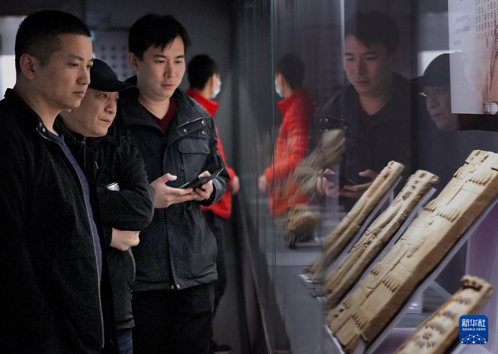 观众在郑州大象陶瓷博物馆观看展品(3月1日摄)。