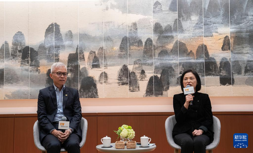3月17日,西九文化区管理局行政总裁冯程淑仪(右)、香港故宫文化博物馆馆长吴志华在接受媒体采访。新华社记者 吕小炜 摄