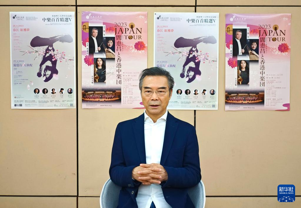 3月24日,香港中乐团艺术总监兼终身指挥阎惠昌在接受记者采访。新华社记者 王申 摄