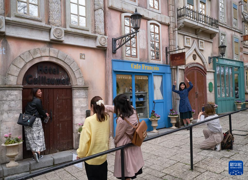 3月31日,游客在日本神奈川县箱根的小王子博物馆拍照留念。