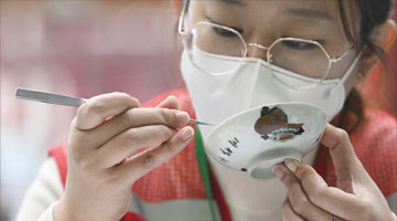 这是在宝胜村村屋墙壁上展出的影像艺术作品(4月1日摄)。