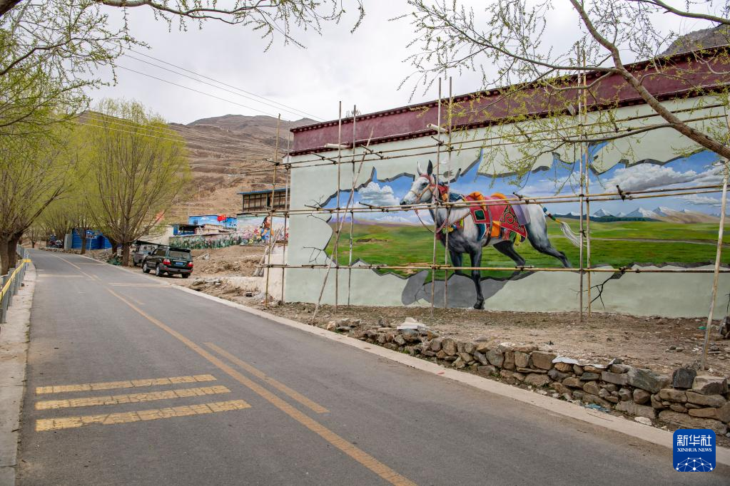 这是4月10日在拉萨市达孜区章多乡恰村拍摄的墙画。