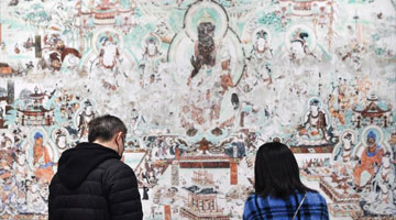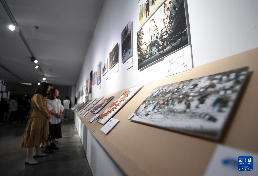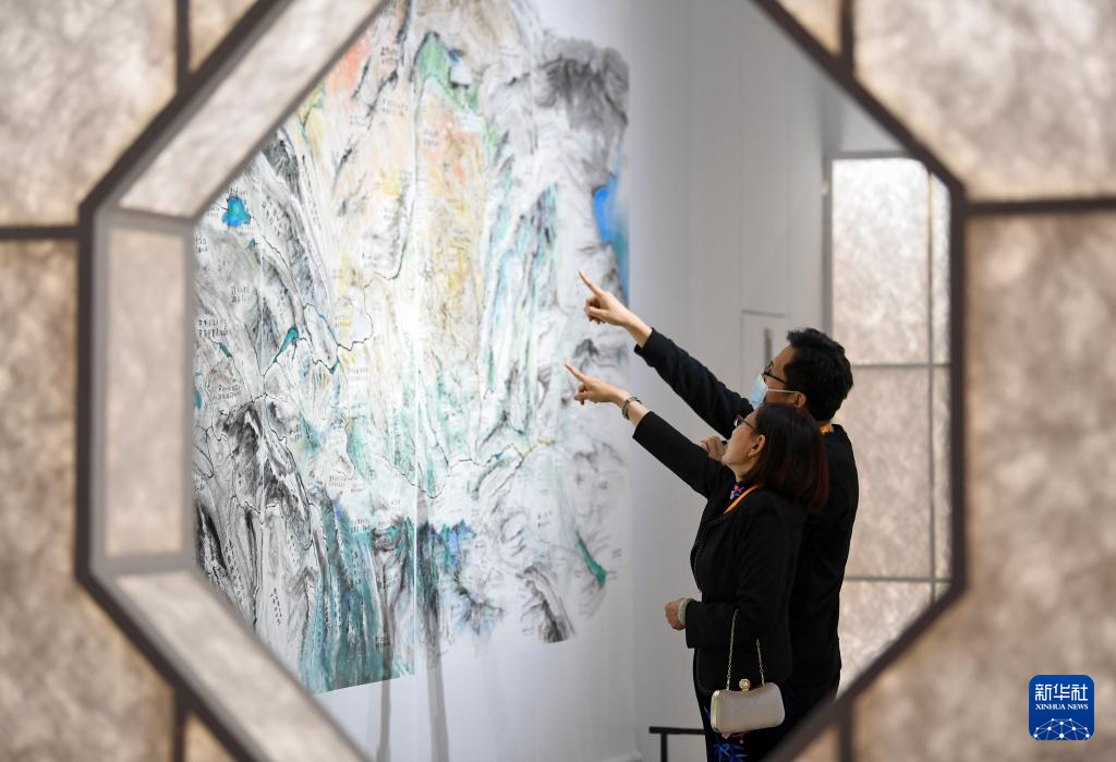 4月16日,观众在银川当代美术馆观看展览。