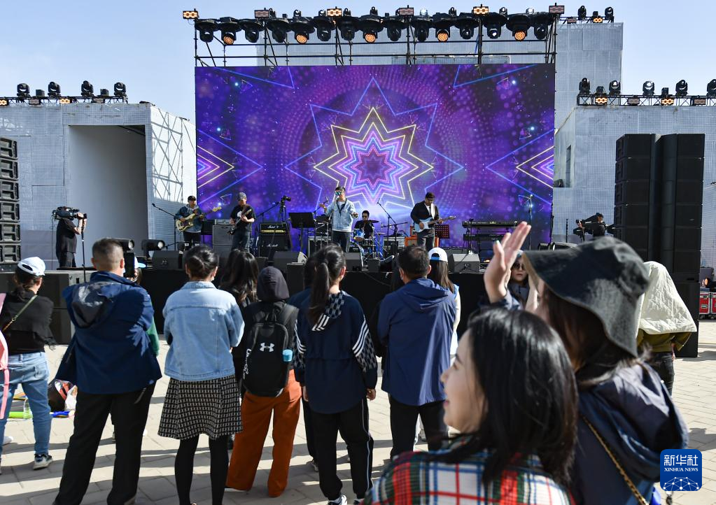 4月15日,游客在“2023下苑艺术生活季”活动现场观看乐队演出。