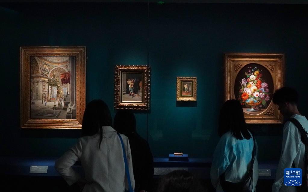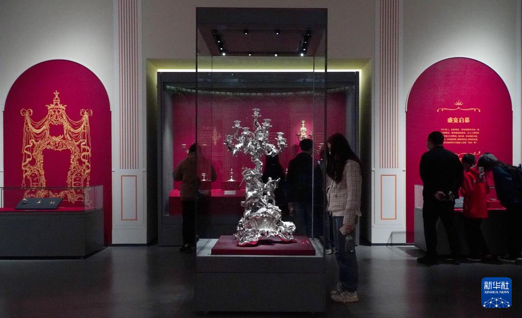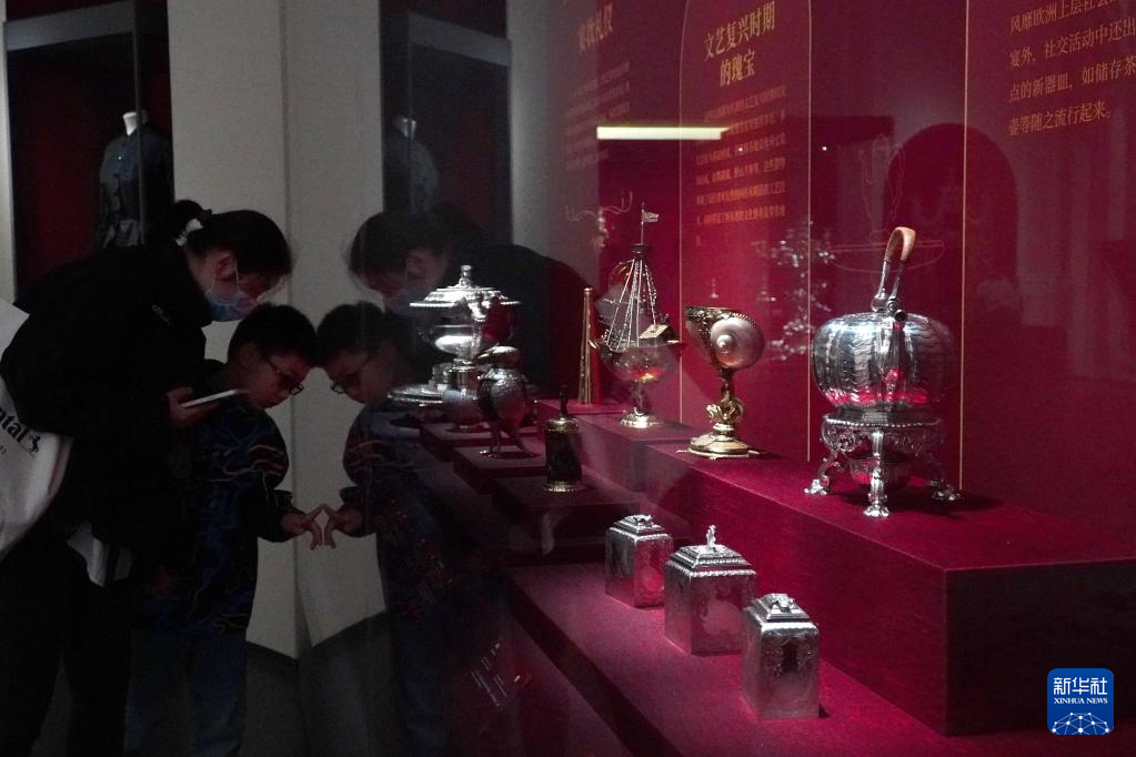 4月29日,在位于山东省济南市的山东博物馆,参观者在英国V&A博物馆藏吉尔伯特精品展上观看展品。