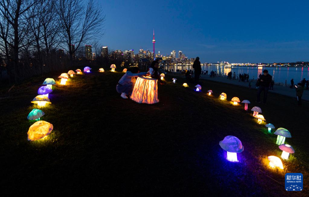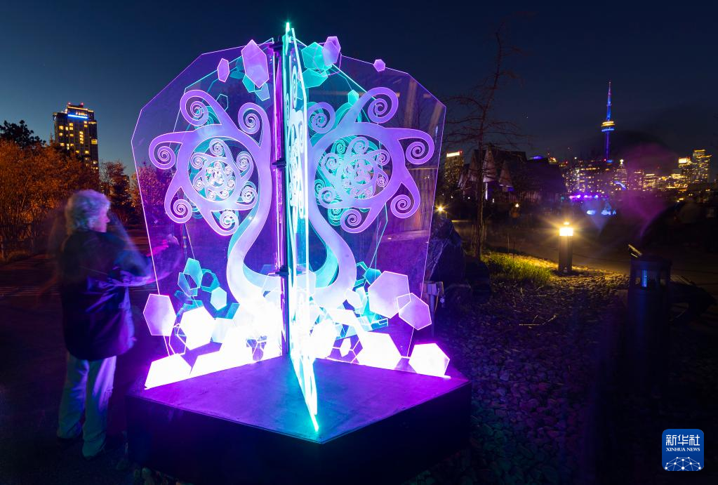 5月5日,人们在加拿大多伦多举办的艺术灯光秀上参观。新华社发(邹峥摄)