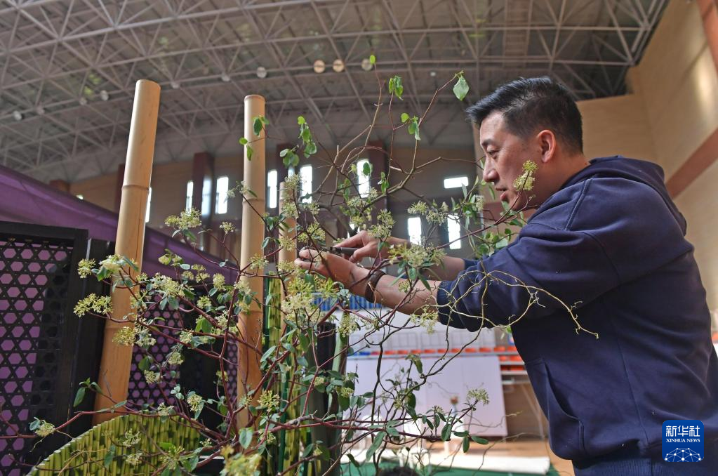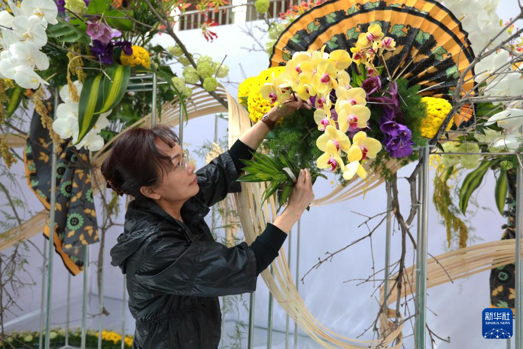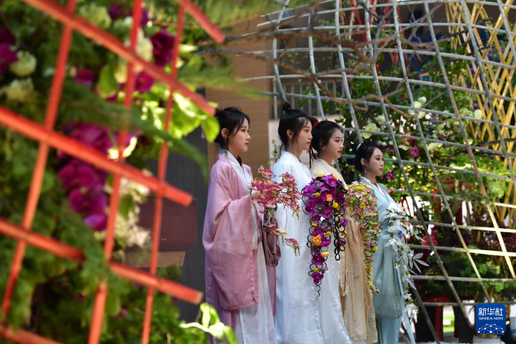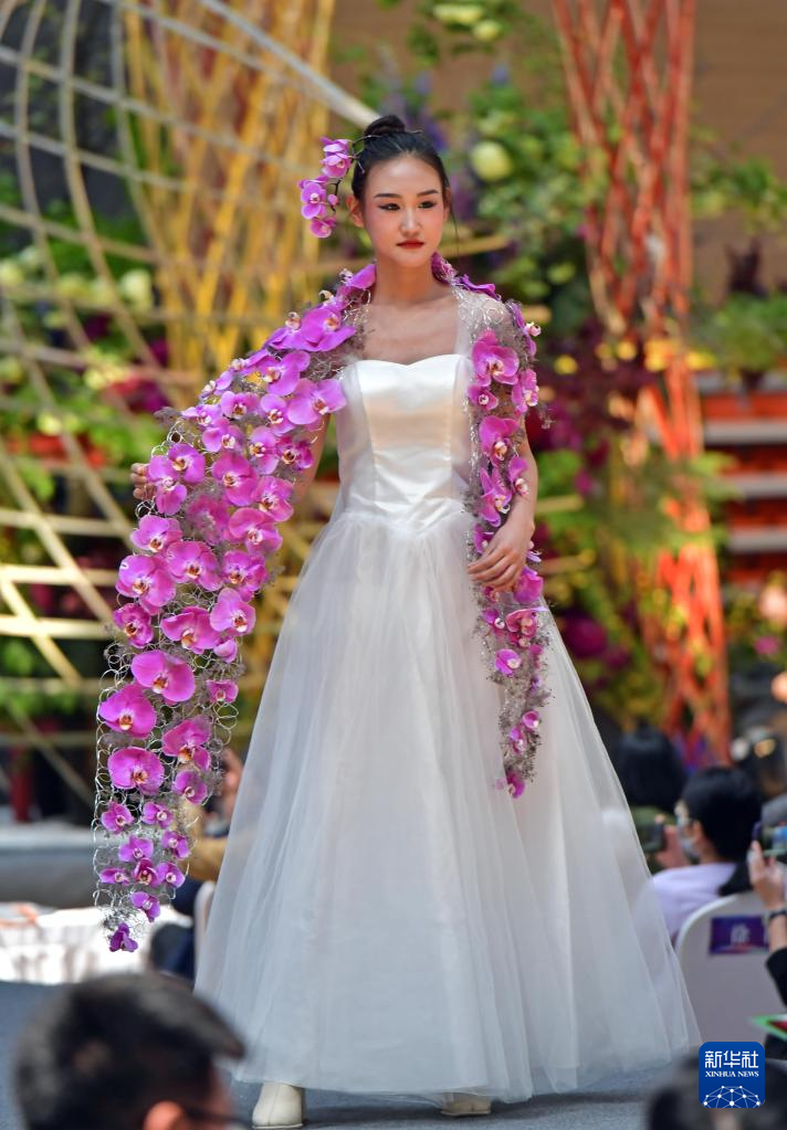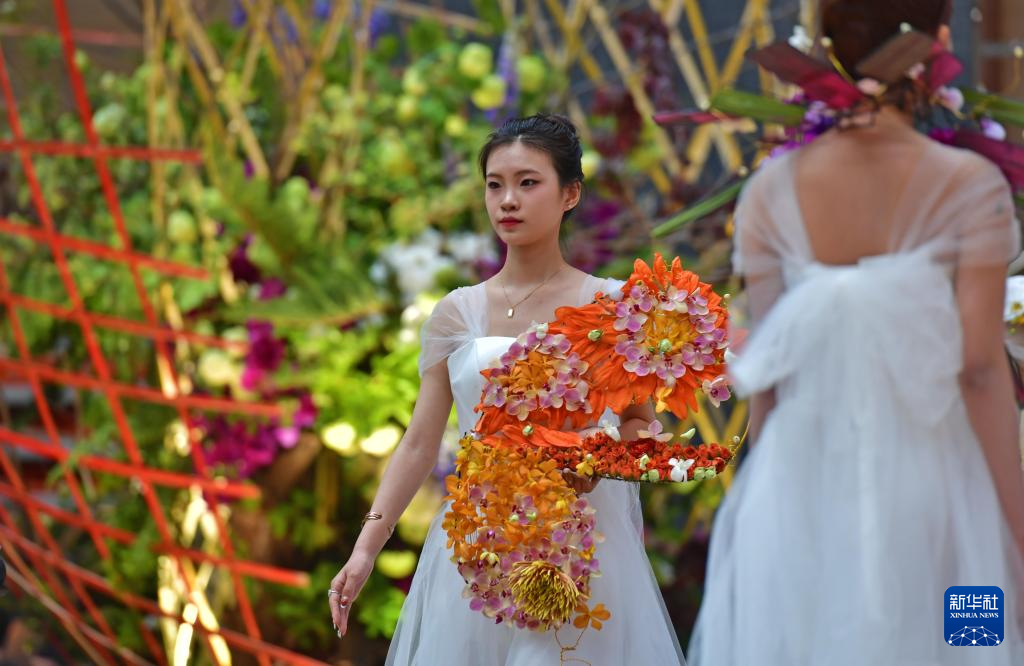 5月10日,辽宁农业职业技术学院学生进行花艺秀展示。