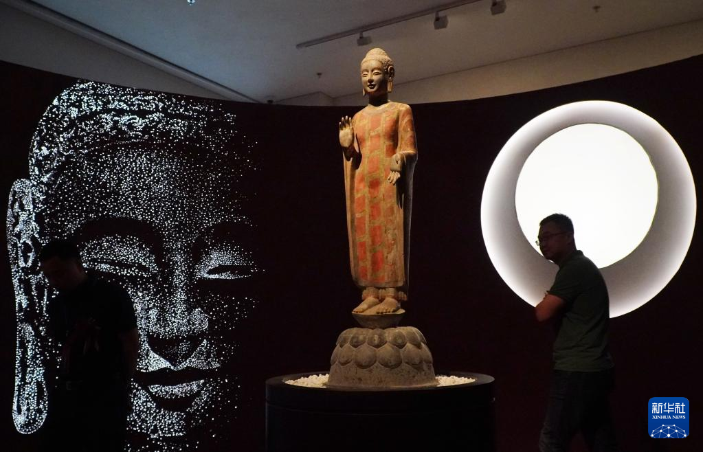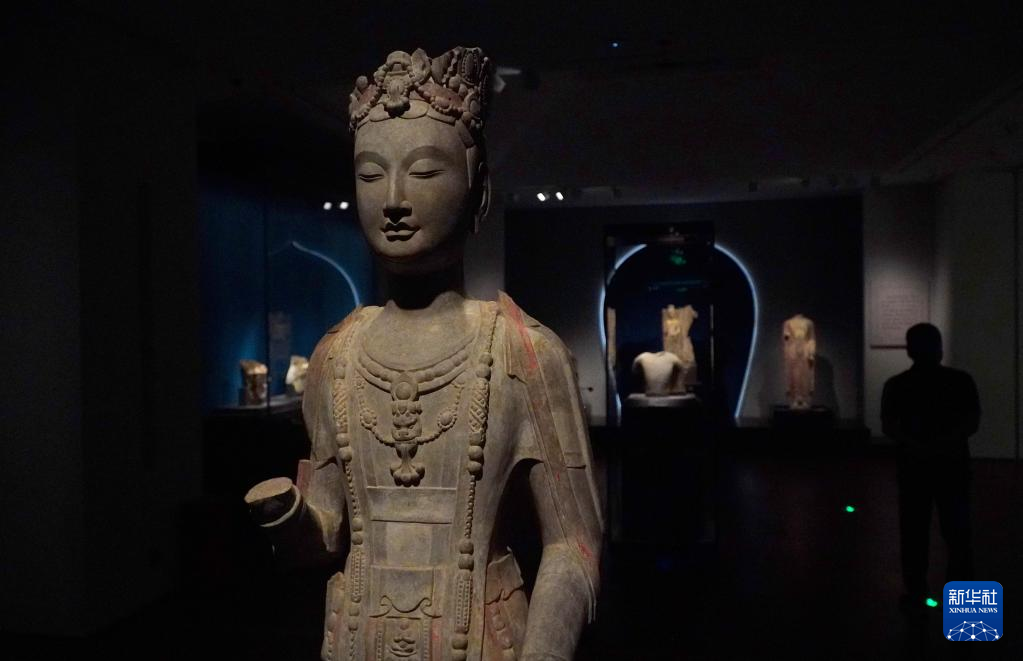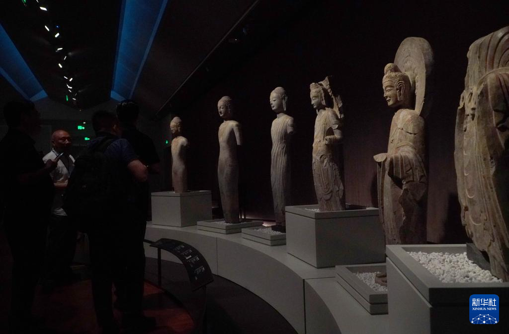 5月15日,在山东省青州博物馆新馆,1996年龙兴寺遗址窖藏出土的佛教造像正在进行展出。