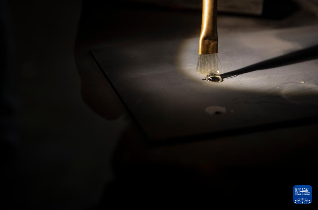 这是5月16日在以色列拉马特甘巴尔伊兰大学的费特纳米科学与艺术博物馆拍摄的装置艺术作品。该作品呈现了纳米超疏水材料的特性。