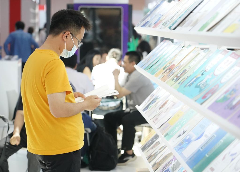 6月16日,观众在北京举行的第29届北京国际图书博览会上观看展示的“美猴王系列”文创产品。