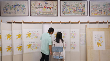 6月22日,参观者在位于三门峡市的中国摄影艺术馆内参观拍摄展出的照片。