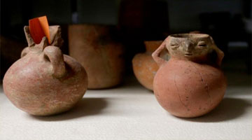 6月22日,参观者在三门峡国际文博城内的展览现场参观。