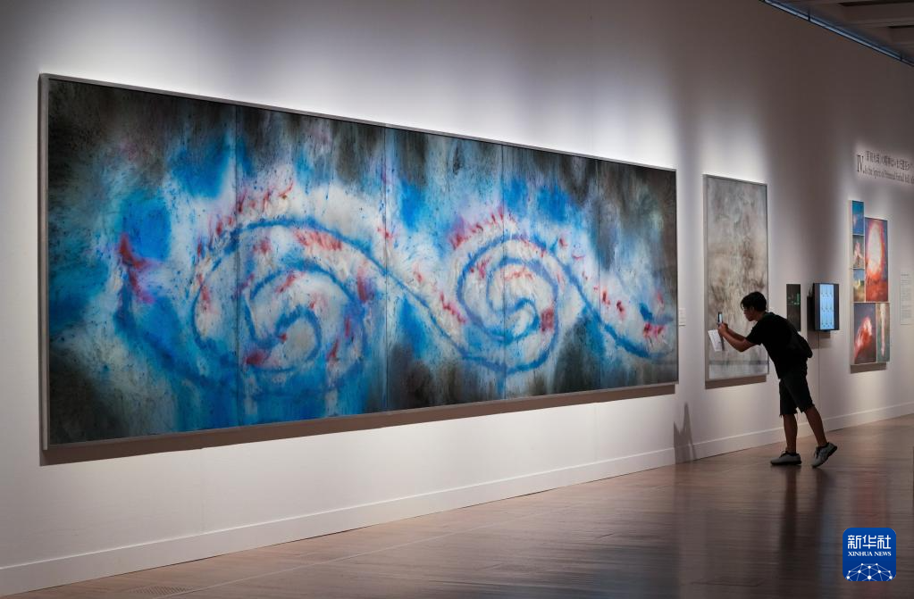 当日,中国艺术家蔡国强个人展览“宇宙游——从‘原初火球’出发”在日本东京的日本国立新美术馆开展,吸引众多观众参观。展览追溯蔡国强多年艺术实践和经历,将持续至8月21日。