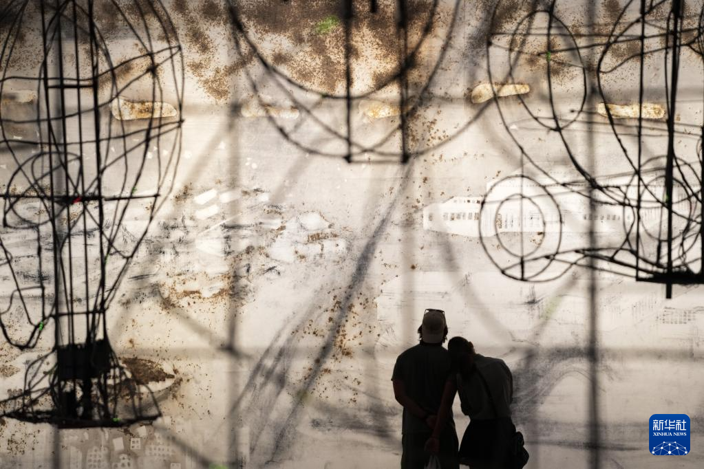 6月29日,参观者在位于日本东京的日本国立新美术馆观看蔡国强个人展览。