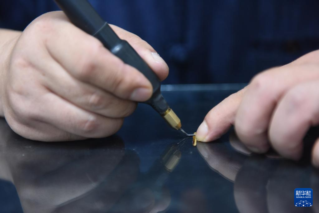 7月12日,吴永龙将细小的“零件”从麦秆做成的条片上剪下。