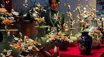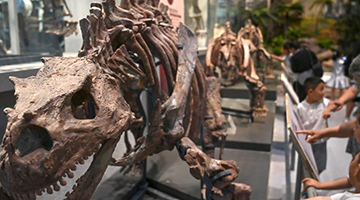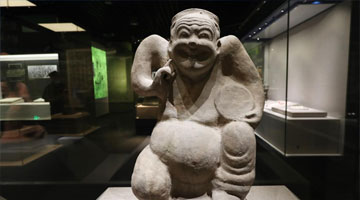 7月14日晚,小朋友在上海博物馆的中国古代陶瓷馆了解彩色釉陶骆驼。